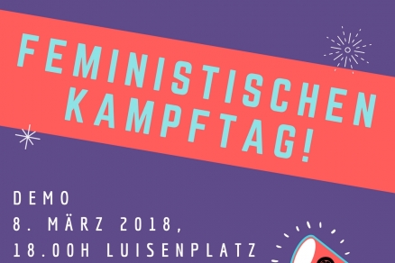 Am 8. März gehen wir in Darmstadt auf die Straße, um die Errungenschaften und Kämpfe von FLTI* zu feiern. Wir tun dies in einem weltweiten Zusammenhang, am 8. März ist keine FLTI* alleine auf der Straße! Solidarisch werden wir uns gegen Sexismus und Gewalt an FLTI* stellen. Auch davon, dass Feminist*innen gegenwärtig mit Vergewaltigungs- und Morddrohungen überschüttet werden, lassen wir uns nicht davon abhalten, gegen den erstarkenden konservativen und rechten Diskurs für unsere Rechte einzutreten.2018 wollen wir die Abschaffung der Paragrafen 218 und 219 erkämpfen. 2018 wollen wir für das Selbstbestimmungsrecht über das eigene Geschlecht, den eigenen Körper und die eigene Sexualität einstehen.